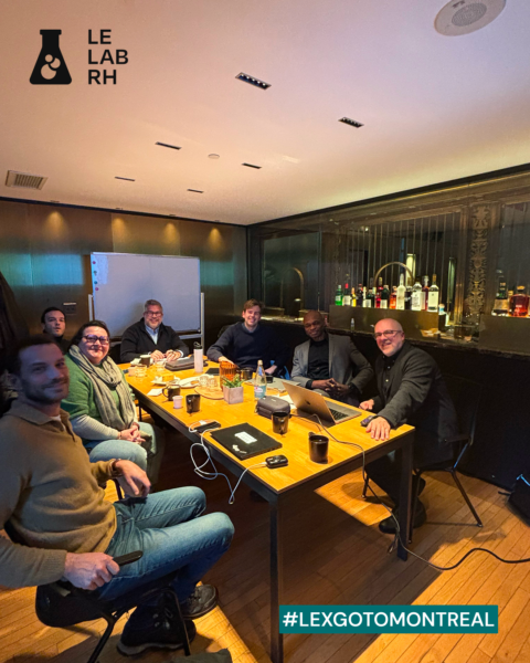 Paul-Marc Santelli (RandomCoffee), Matthieu Penet (YAGGO), Leon Wever (Coachello – AI Empowered Coaching Platform), participants à la LEX du Lab organisée par Séverine Loureiro avec Jean-Baptiste Audrerie, ont pu partager sur les enjeux HR Tech et IA sur le marché canadien vs français avec deux experts québecois :